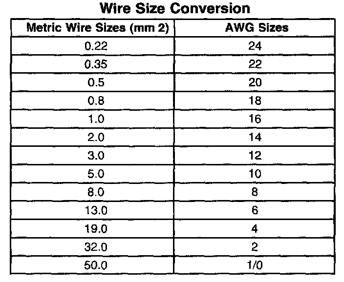 Wire Size Conversion: