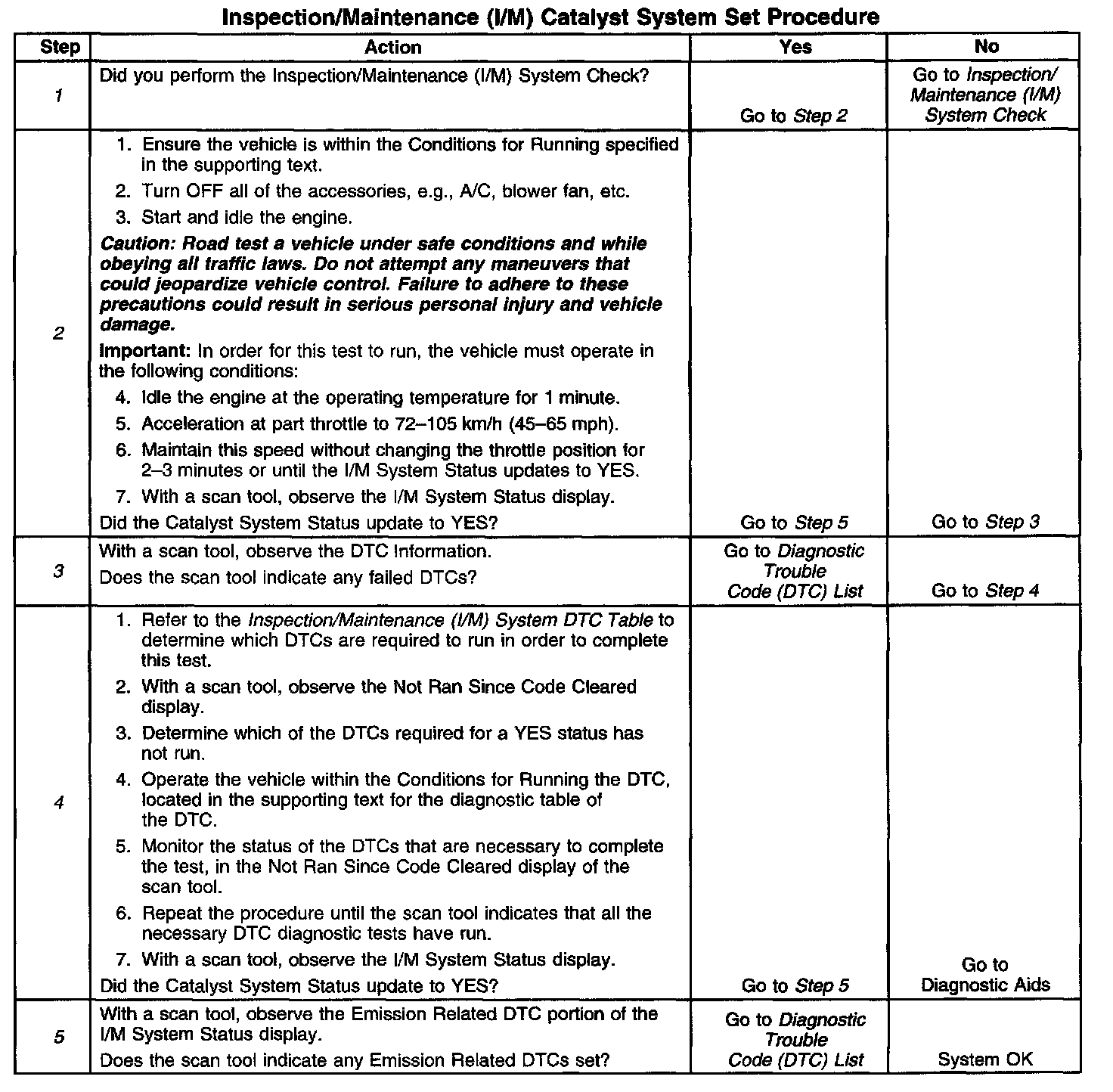 I/M Catalyst System Set Procedure