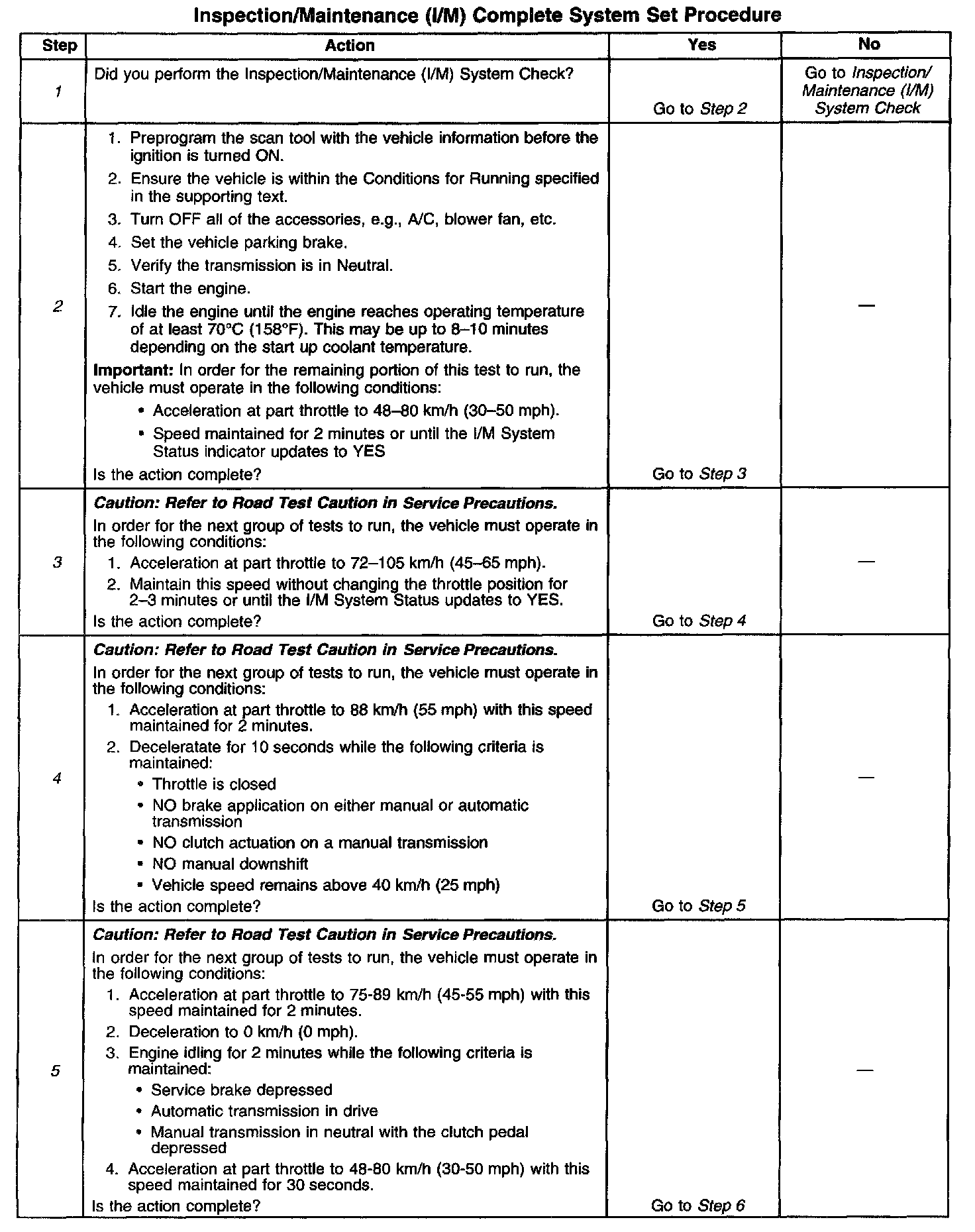 1. Make sure you perform the I/M System Check before performing this test. Failure to do so may result in difficulty updating the status to YES. Inspection/Maintenance (I/M) System Check