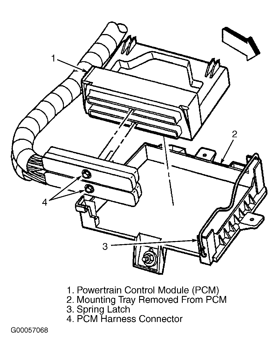 - Release spring latch (3) from PCM (1).