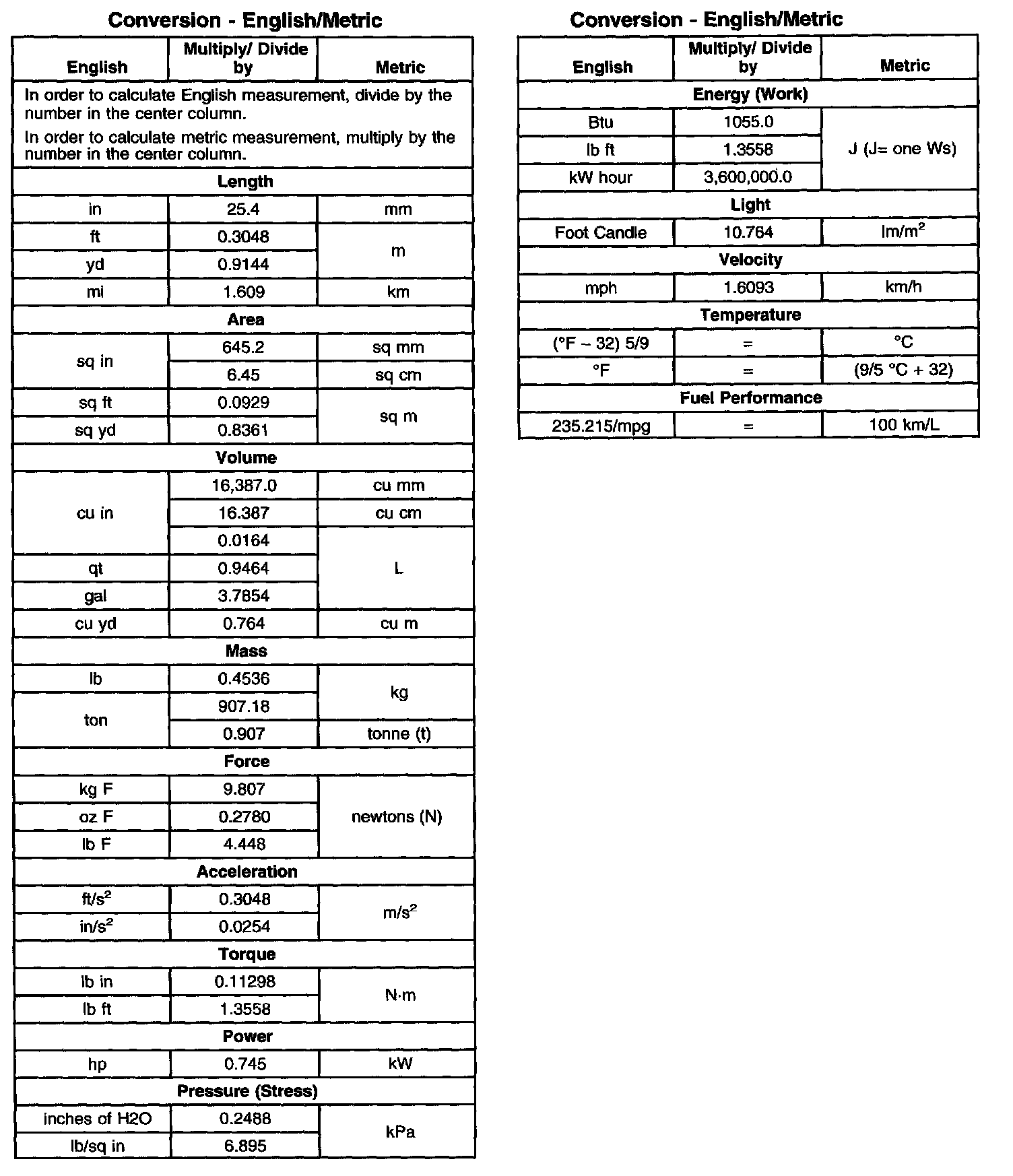 Conversion - English/Metric