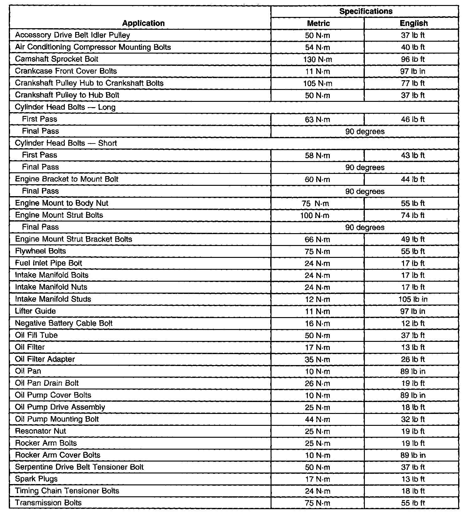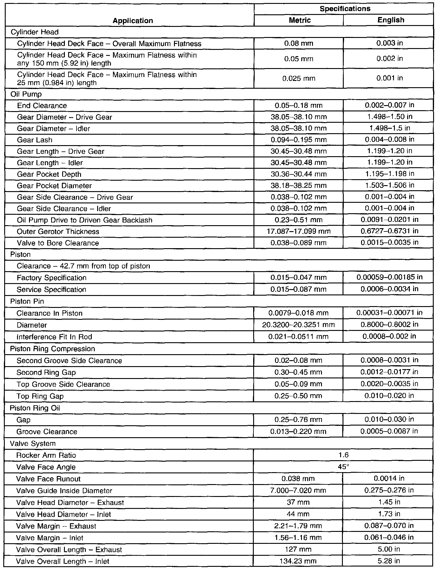 Engine Mechanical Specifications