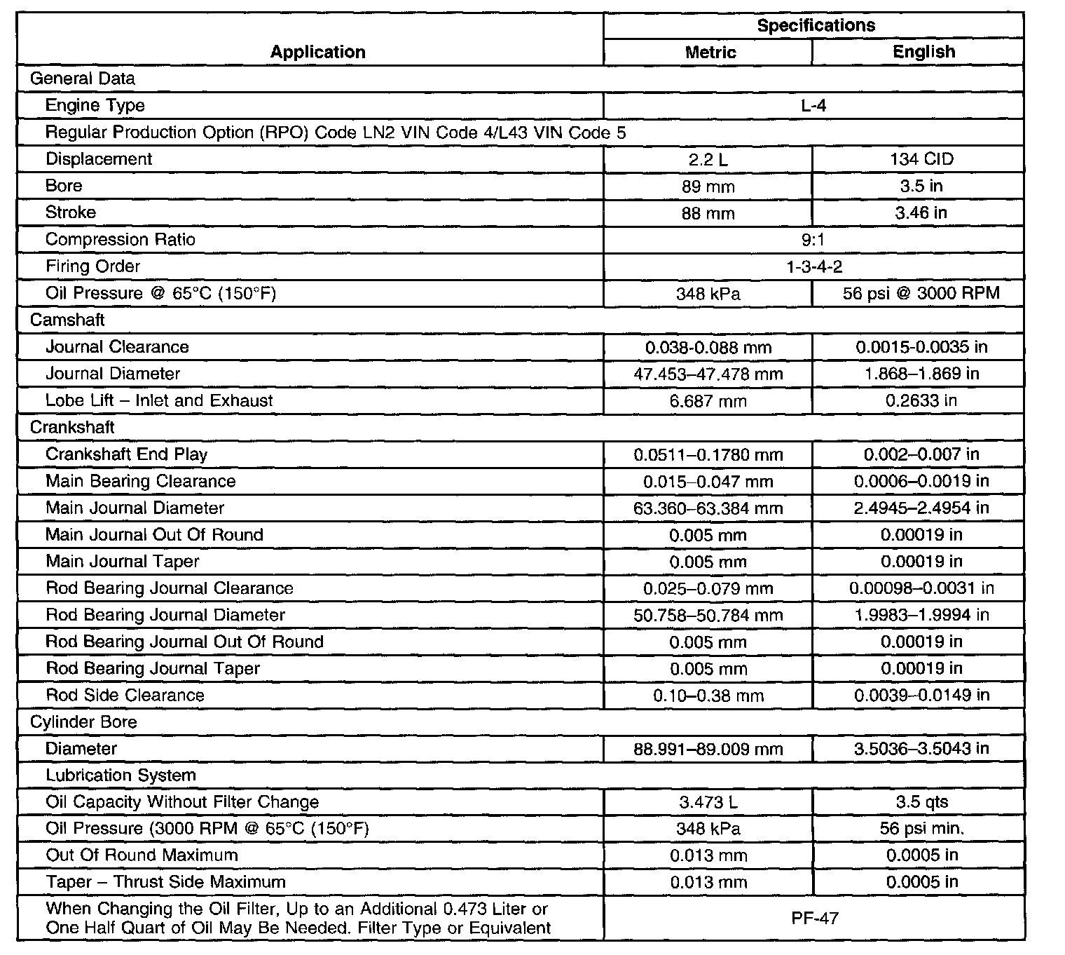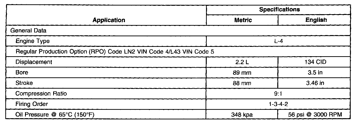 General Engine Specifications