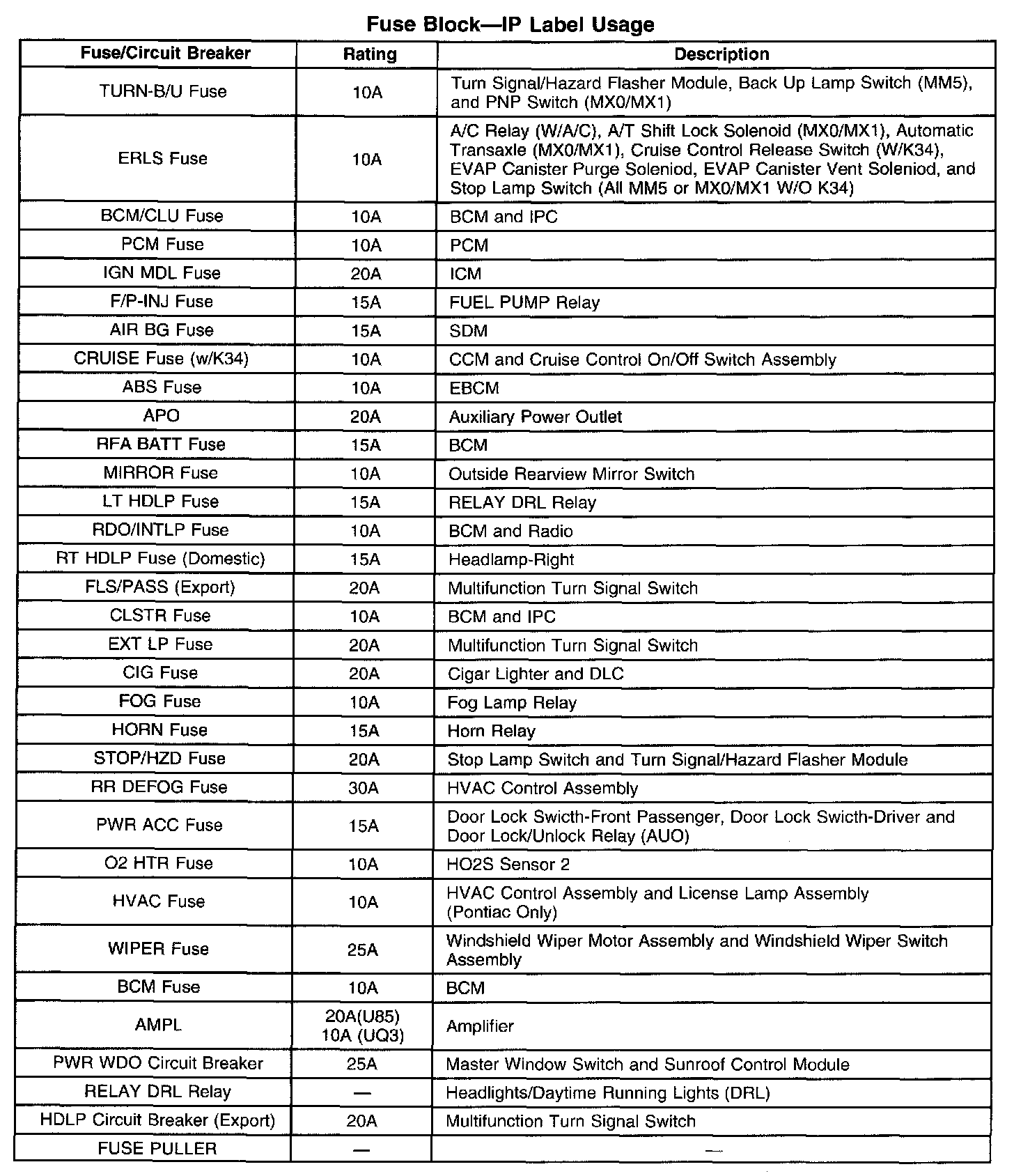 Fuse Block - IP Label Usage:
