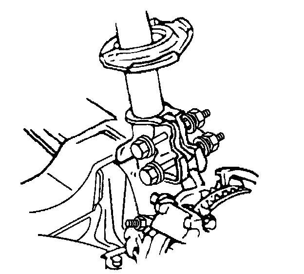 Front Camber Adjustment1. Loosen both strut to knuckle nuts just enough to allow for movement.