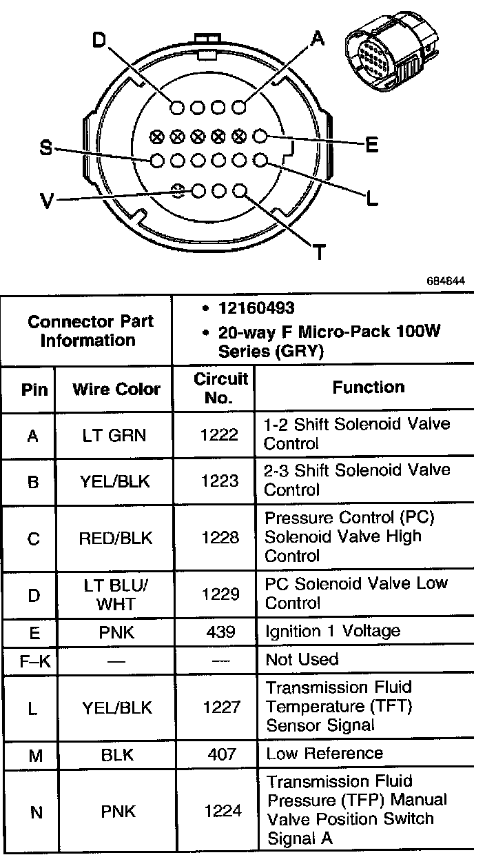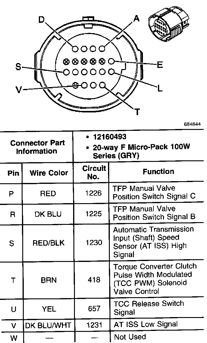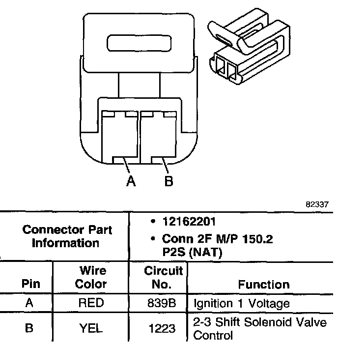 Torque Converter Clutch Pulse Width Modulated (TCC PWM) Solenoid Valve Connector, Wiring Harness Side