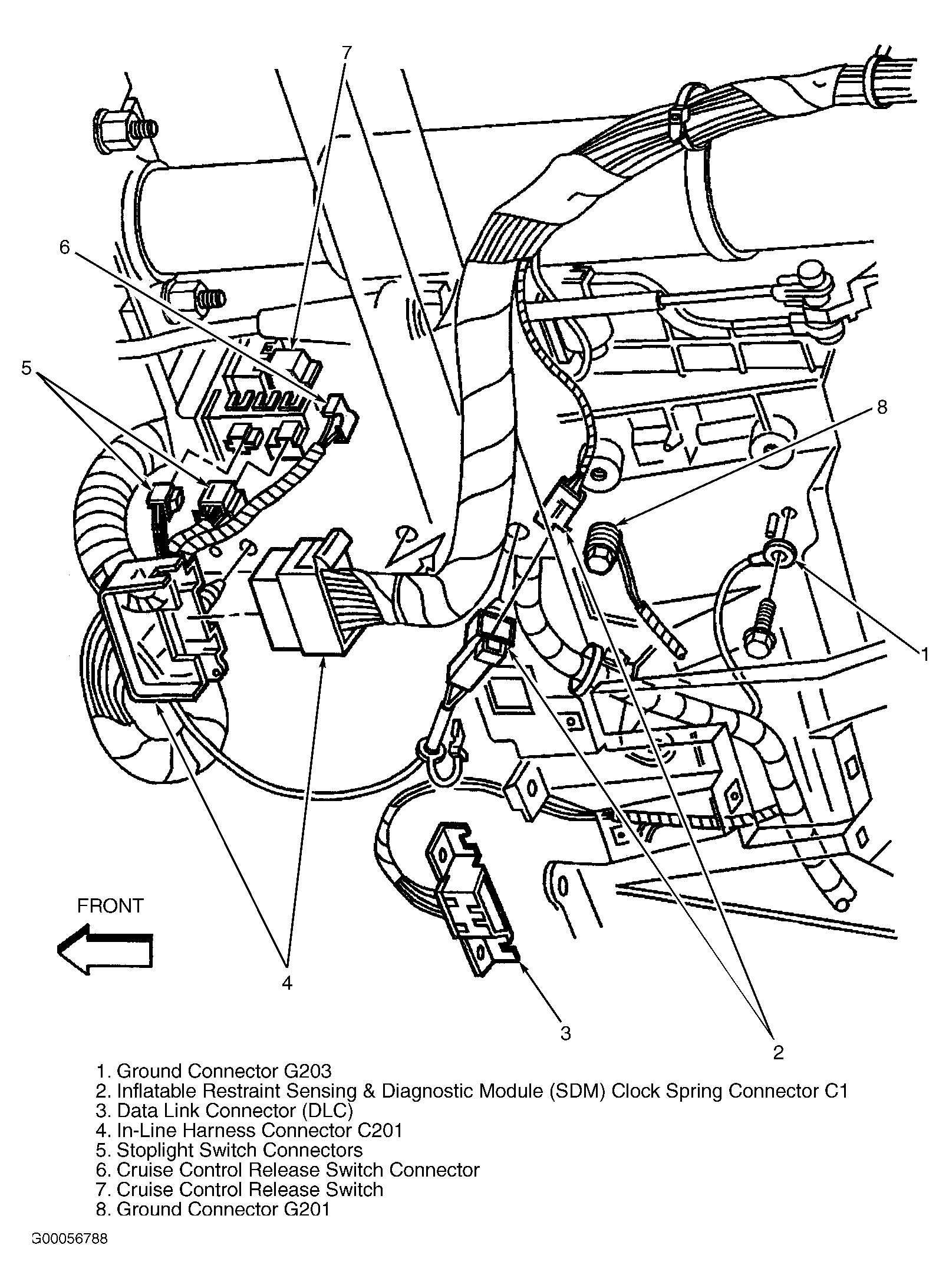 - Check for open or high resistance in Black/White wire between RCDLR connector terminal No. 4 and ground connector G203. See Figure and Fig 1 . See WIRING DIAGRAMS . Repair as necessary, and go to step 26 .