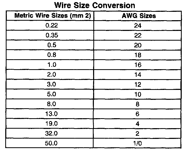 Wire Size Conversion:
