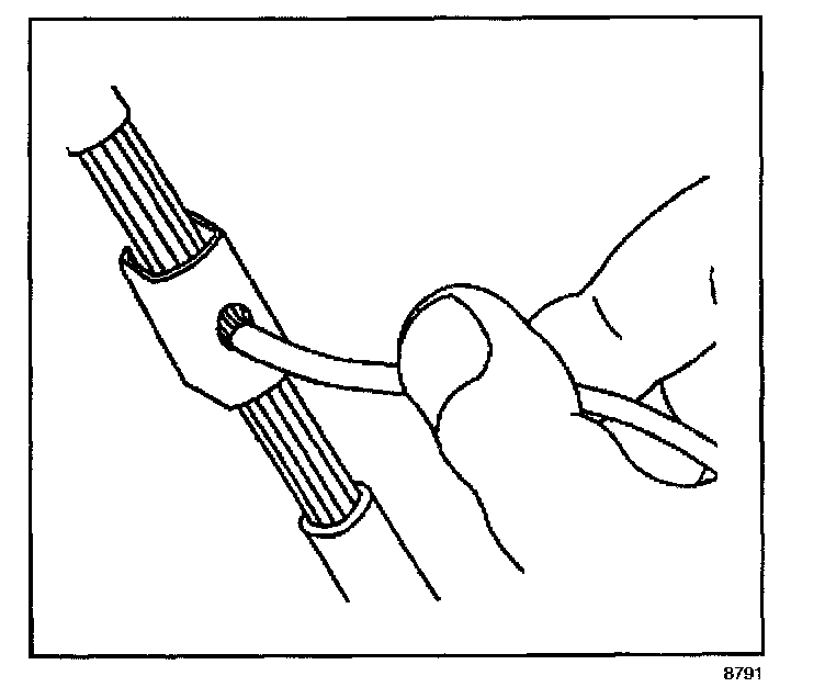^ Strip approximately 7.5 mm (5/16 in) of insulation from each wire to be spliced.