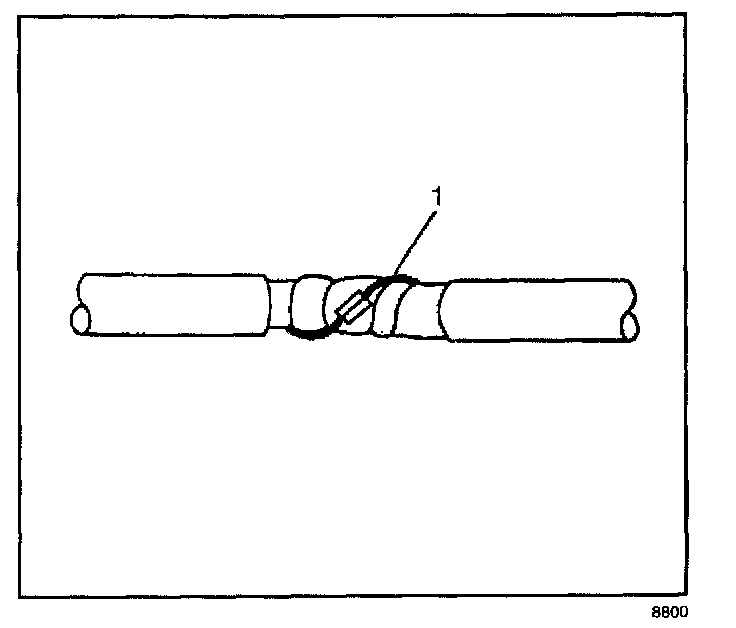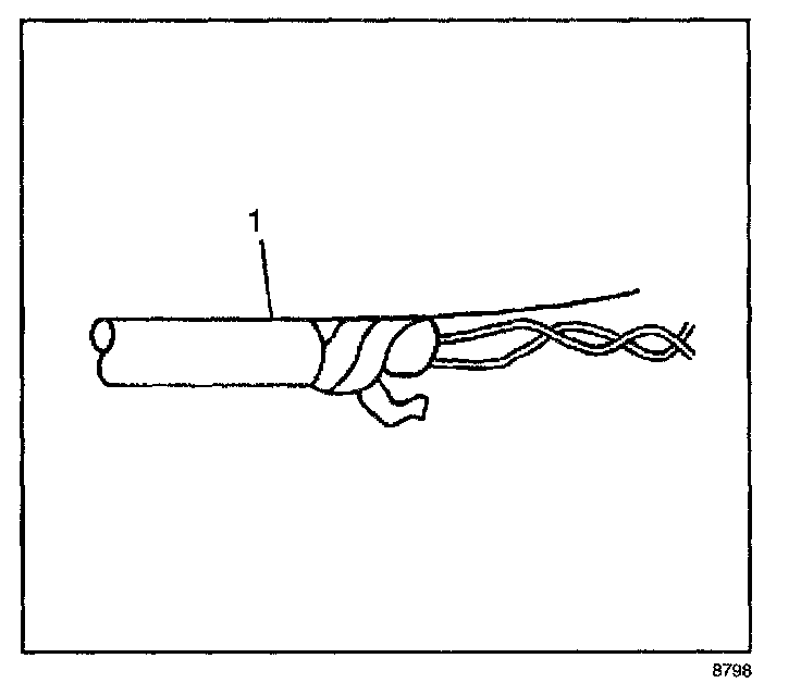 1. Remove the outer jacket (1). Use care not to cut into the drain wire of the mylar tape.