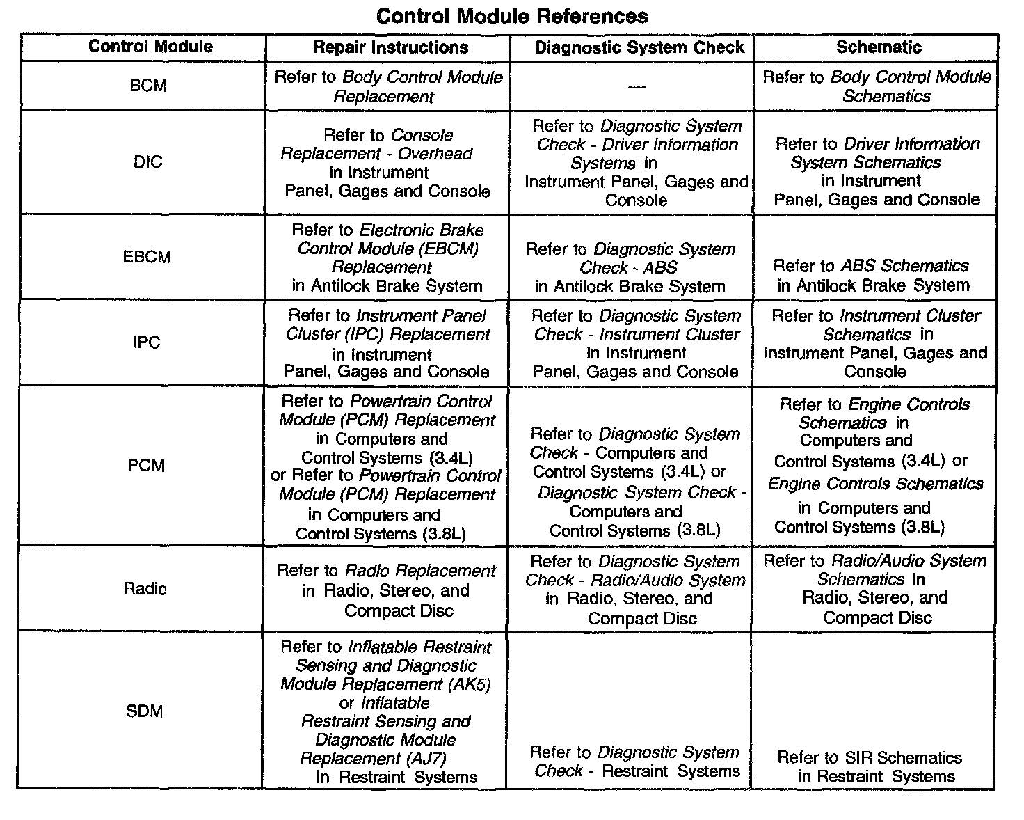 Control Module References