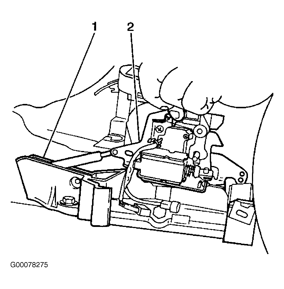 3. Install the shift indicator bulb (1) into the shift indicator (2). See Fig 1 . Install the floor consoles. Install the negative battery cable.