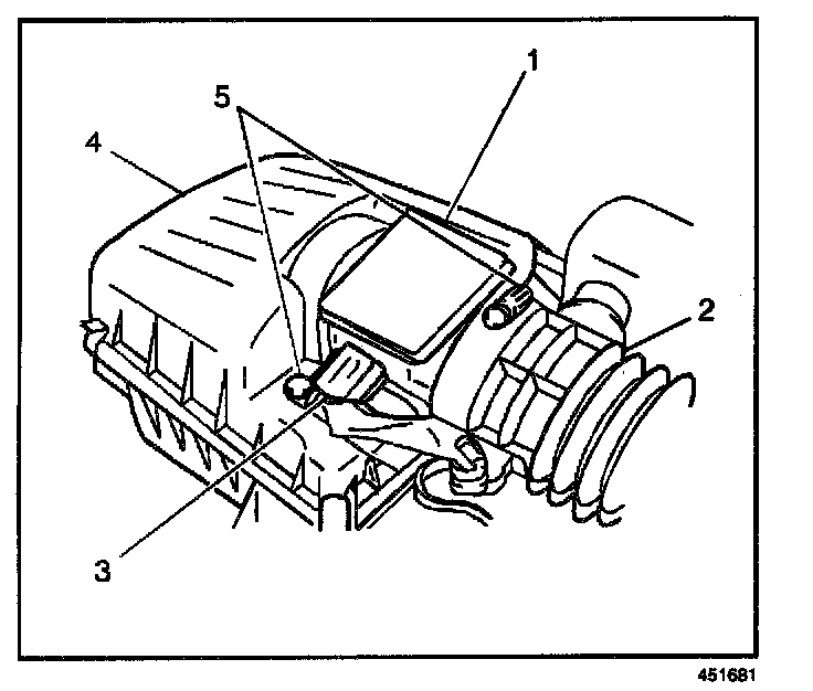 3. Remove the 2 MAF sensor bracket attaching bolts (5).