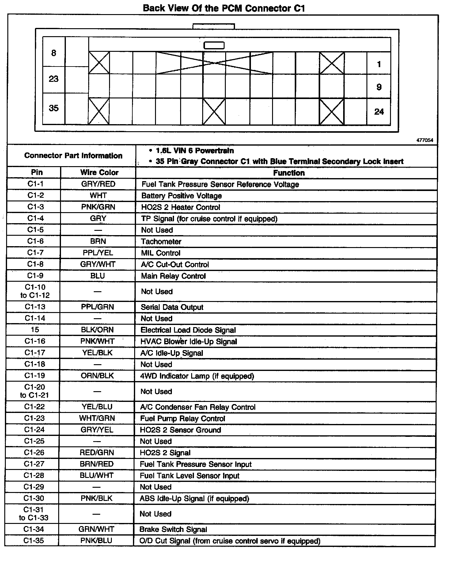 Back View Of The PCM Connector C1: