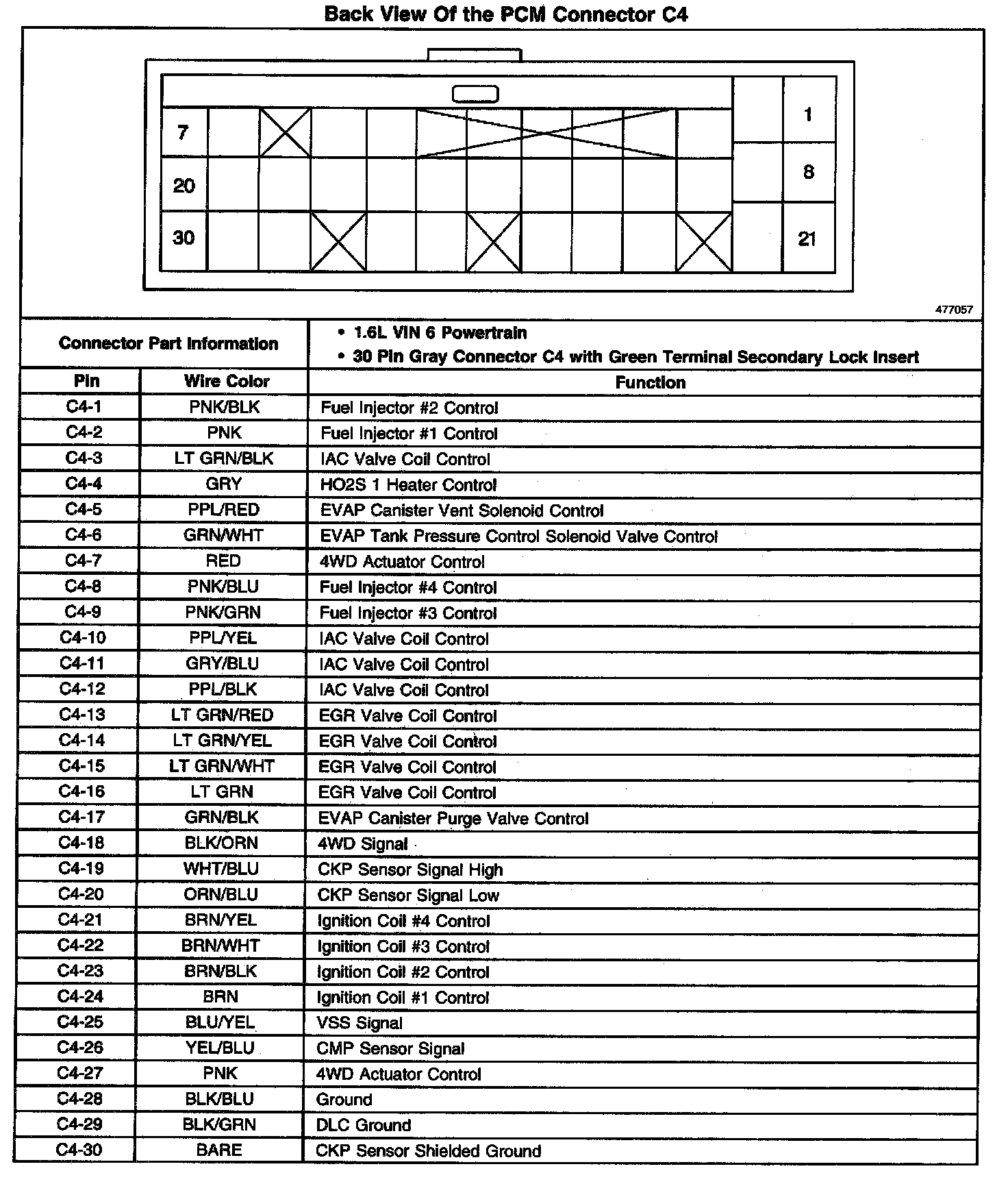Back View Of The PCM Connector C4: