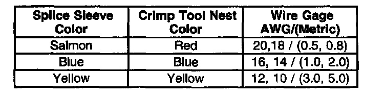 5. Select the proper splice sleeve (2) and the required crimp nest tool, refer to the Crimp and Seal Splice Table.