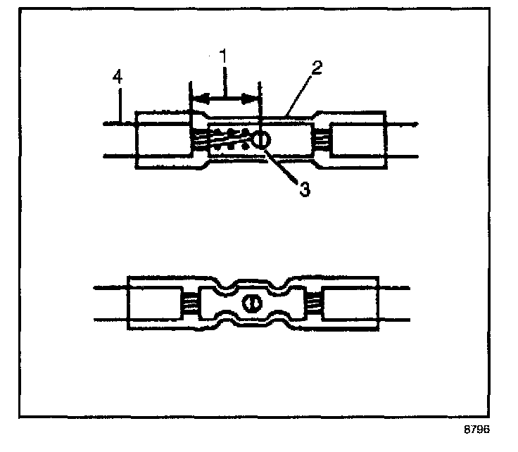 9. Insert the wires into the splice sleeve until the wire hits the barrel stop. The splice sleeve has a stop in the middle of the barrel in order to prevent the wire from passing through the splice (3).