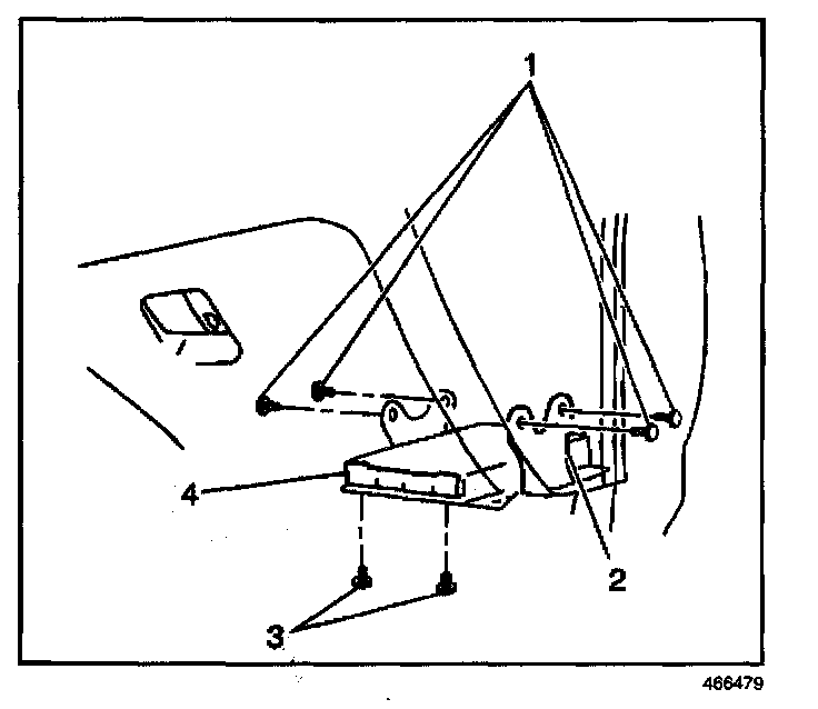 1. Install the PCM bracket (2) underneath the instrument panel.