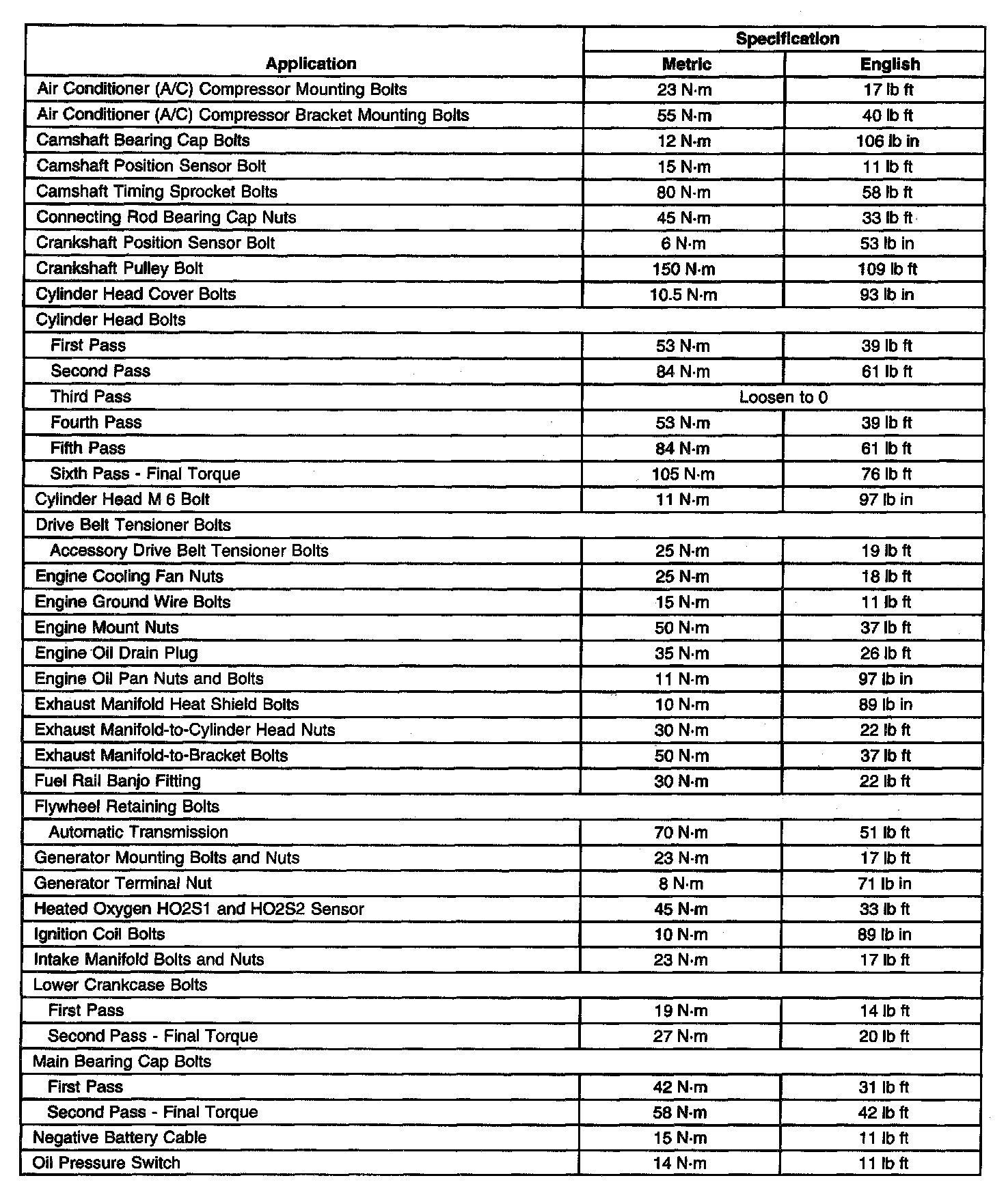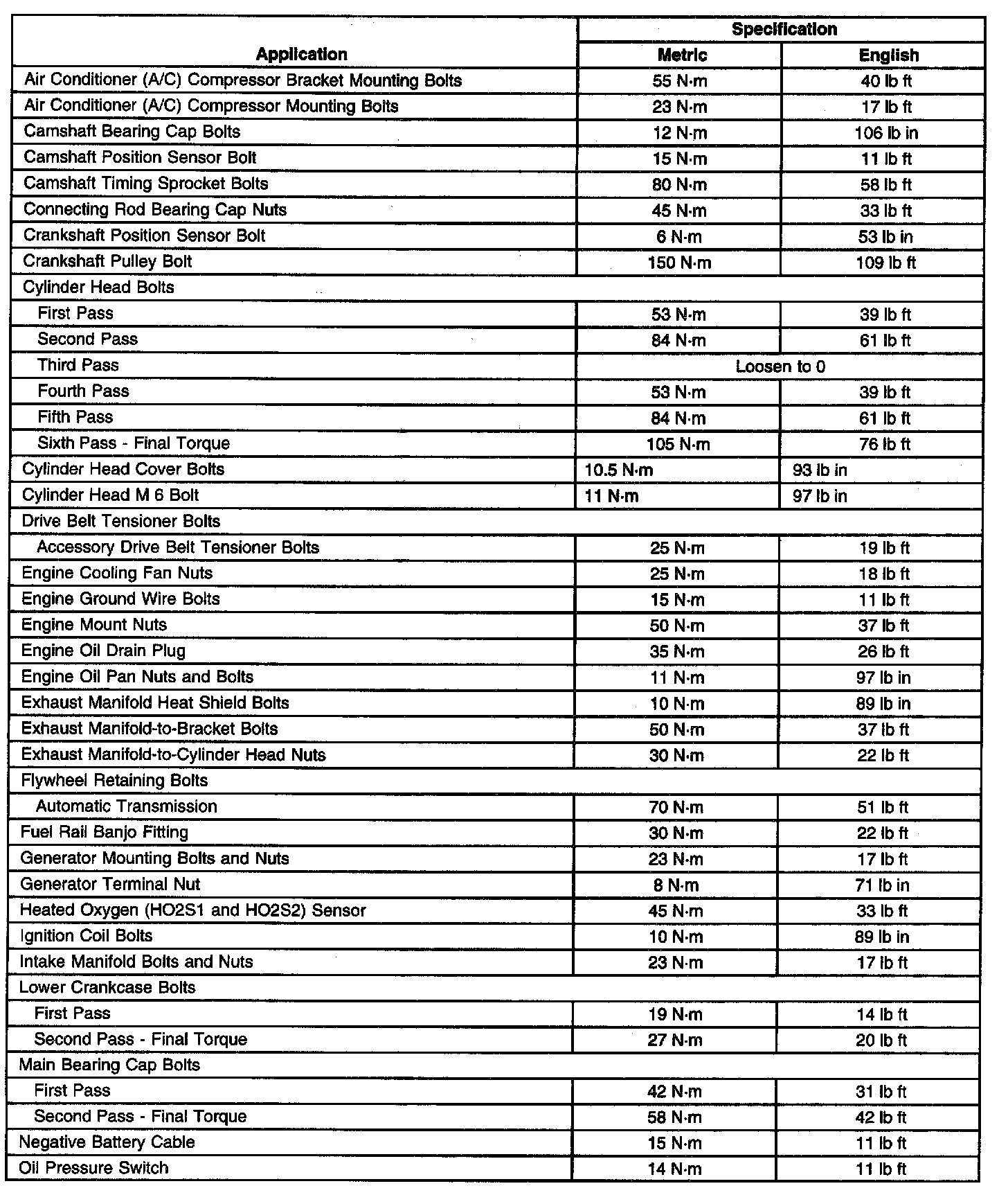 Engine Mechanical - 2.5LFastener Tightening Specifications