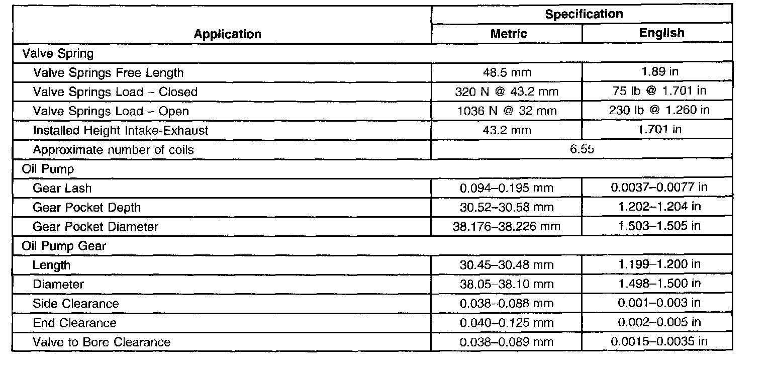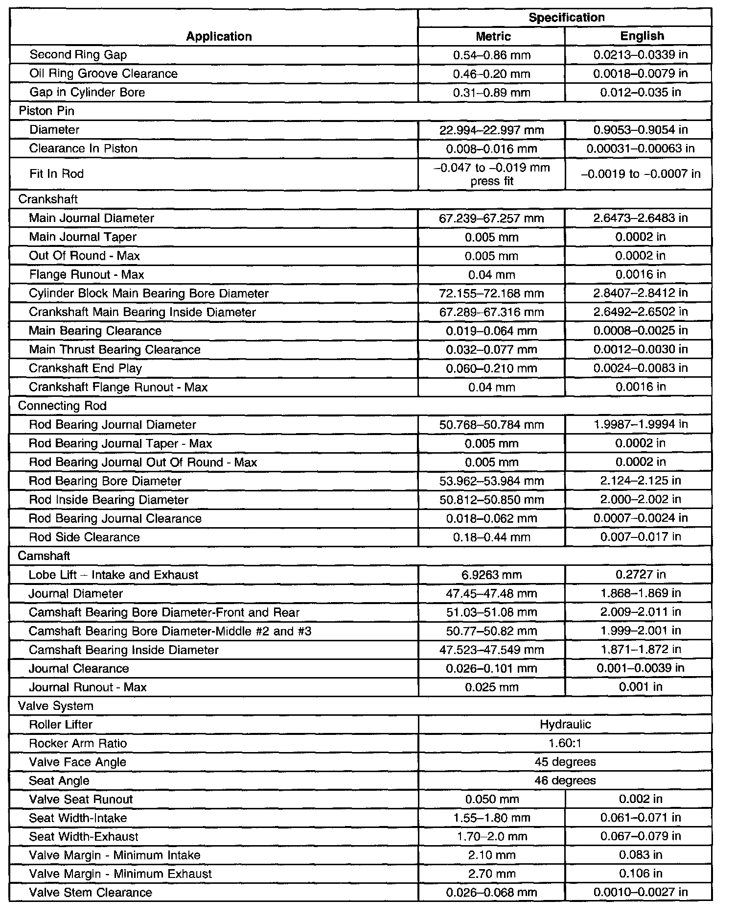 Engine Mechanical Specifications