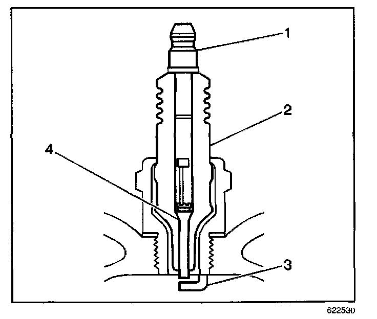 - Inspect for the correct spark plug torque. Refer to Ignition System Specifications. Insufficient torque can prevent correct spark plug operation. An over torqued spark plug, causes the insulator (2) to crack.