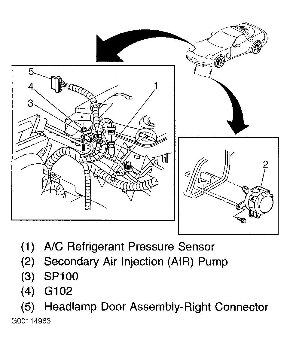 | A/C Refrigerant Pressure Sensor | Attached To A/C High Side Line |