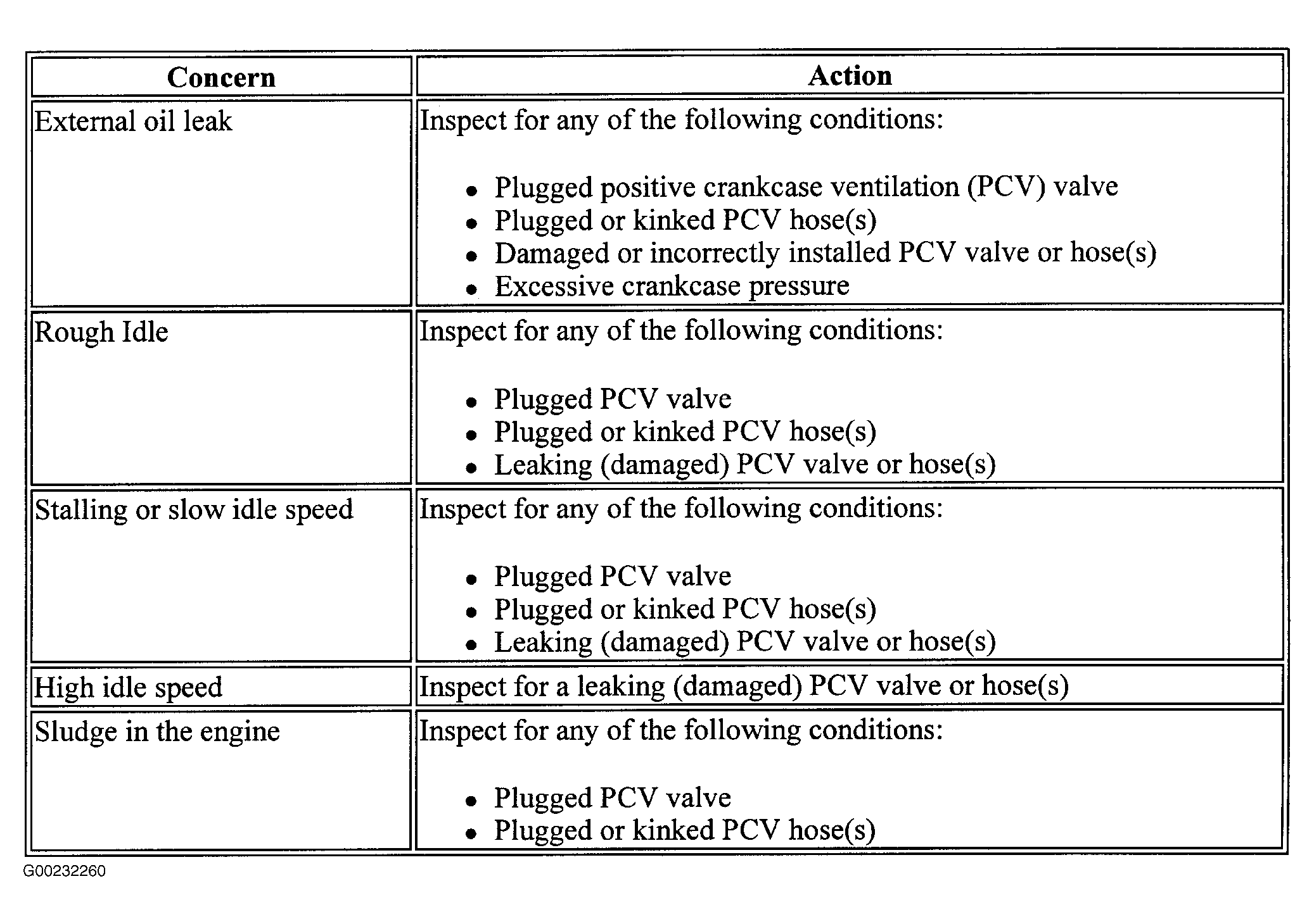 For crankcase ventilation system inspection/diagnosis, see