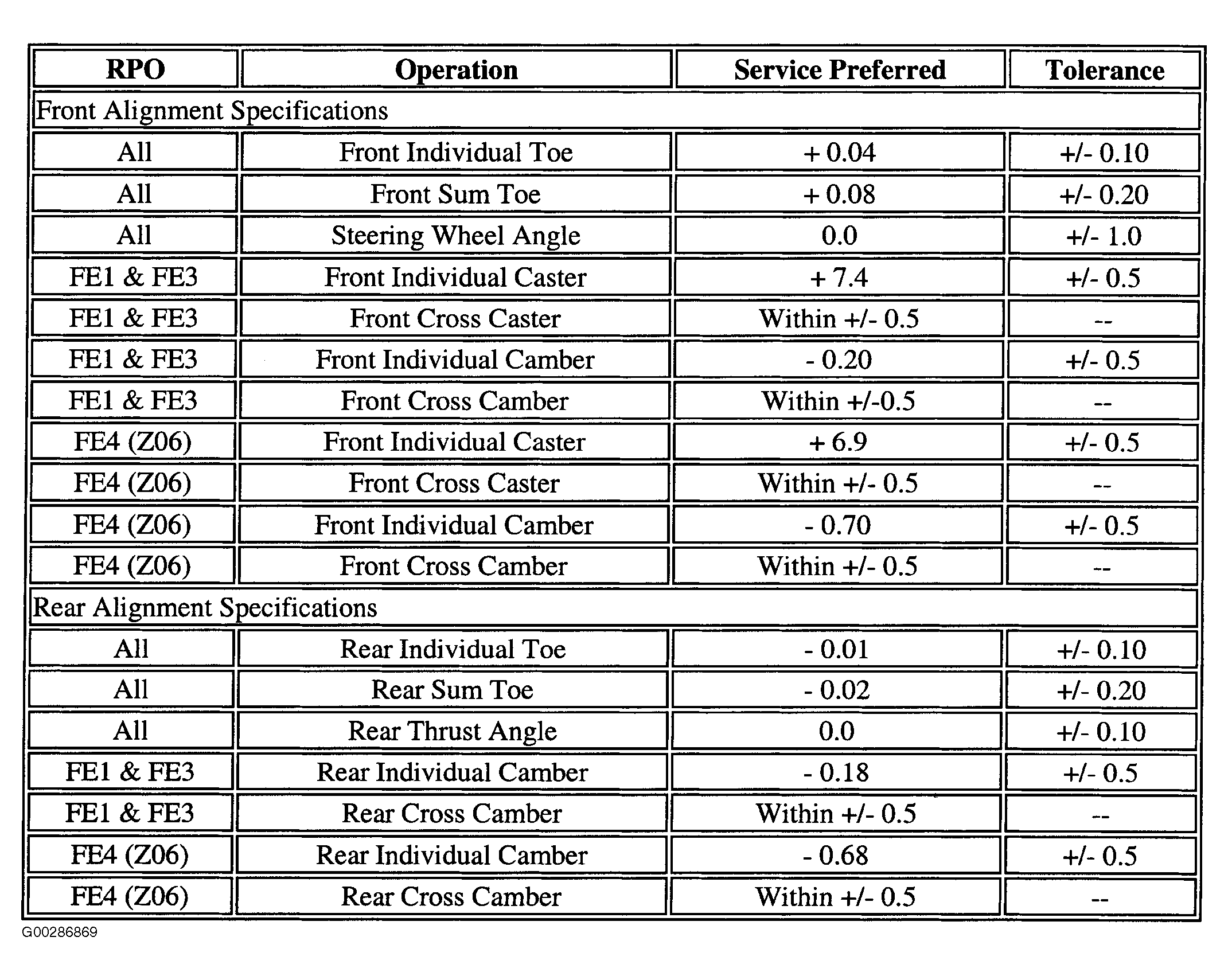 Wheel Alignment Specifications