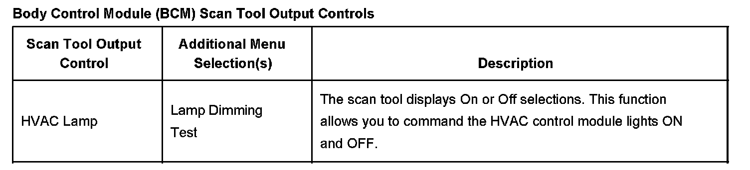 Body Control Module(BCM) Scan Tool Output Controls: