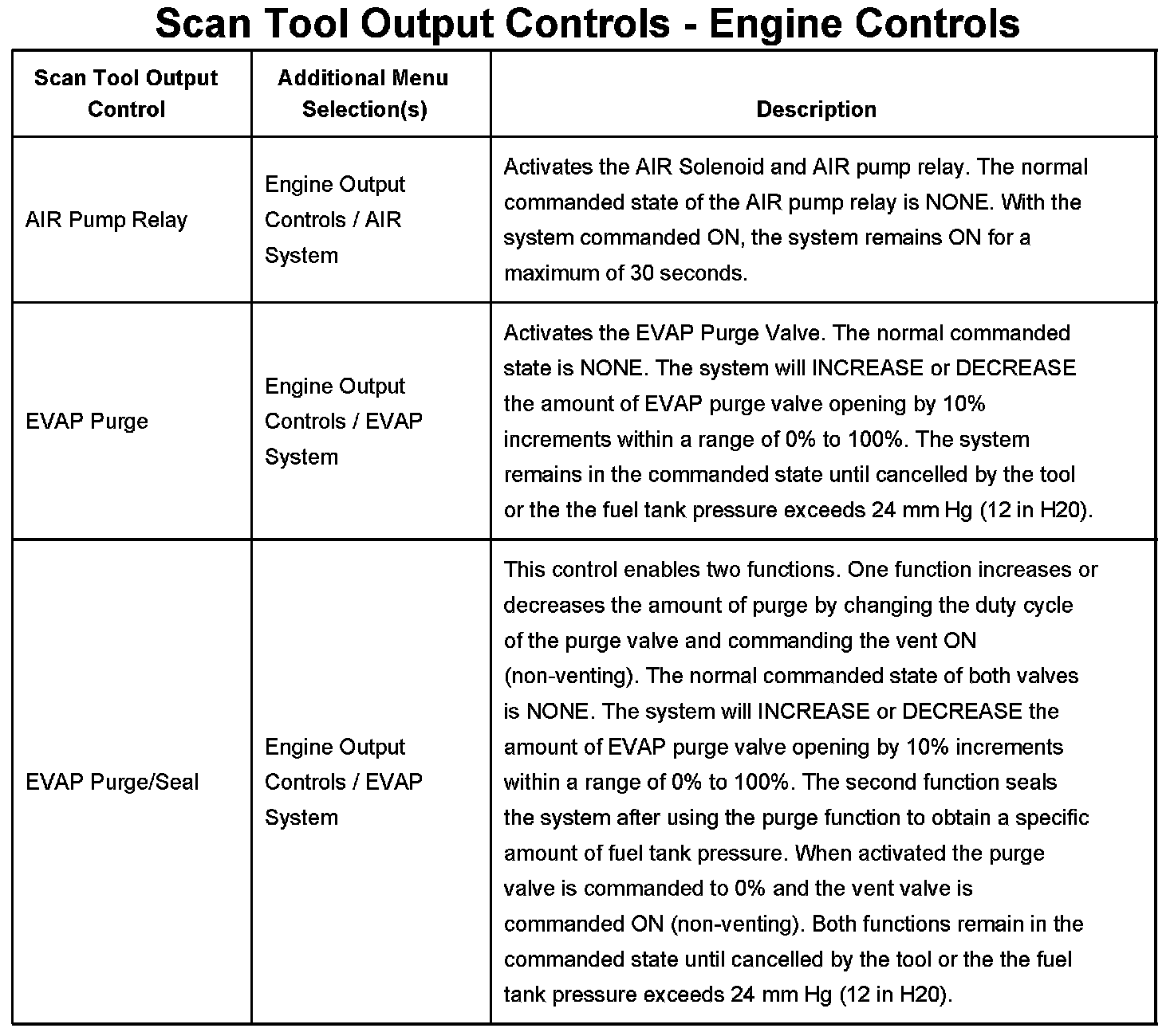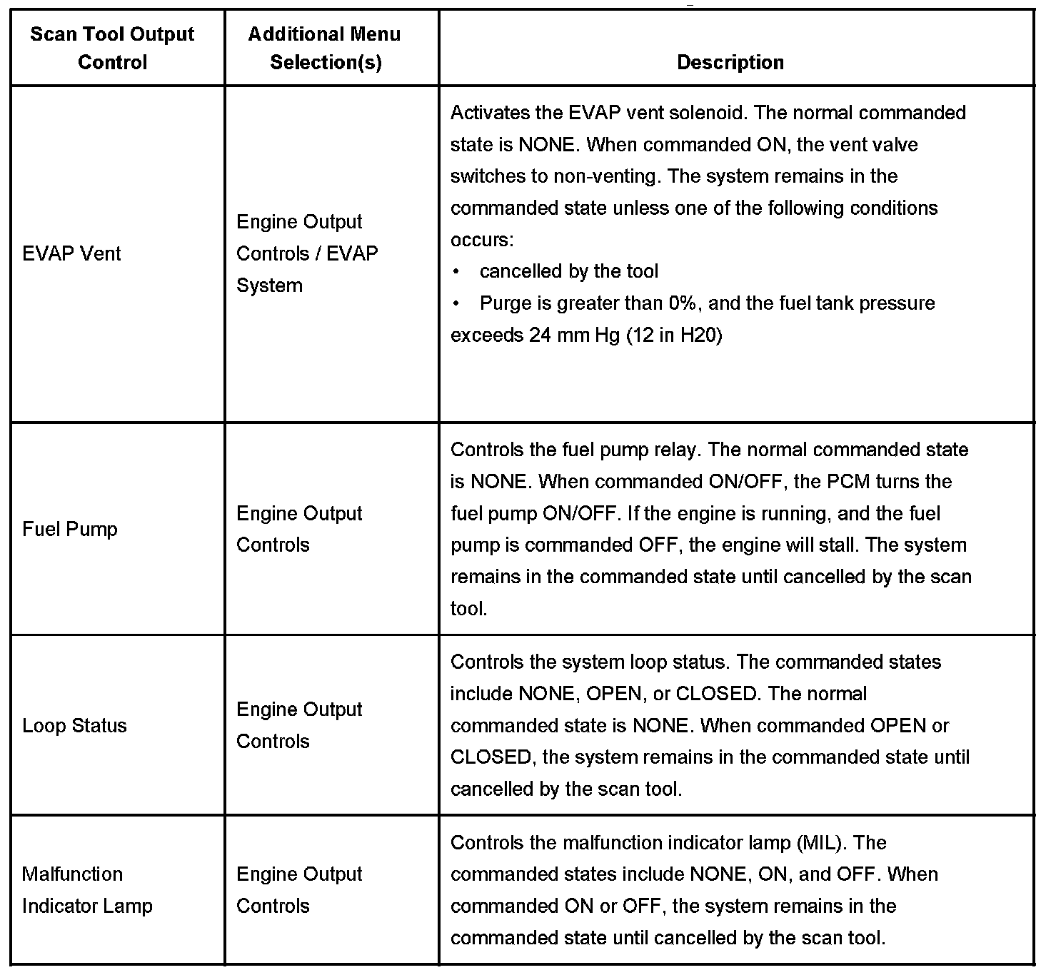 Scan Tool Output Controls