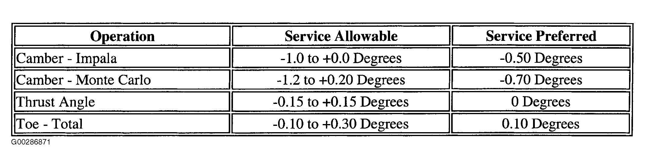 Wheel Alignment Specifications