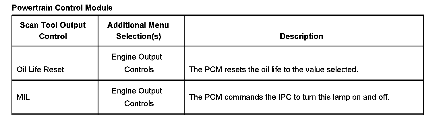 Scan Tool Output Controls - Powertrain Control Module (PCM)