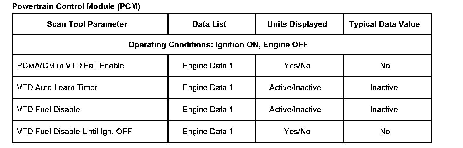 Scan Tool Data List