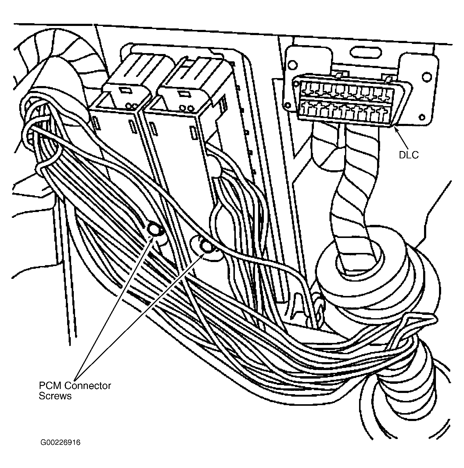 - Powertrain Control Module (PCM) is located below the left side of the Instrument Panel near the steering column, next to the DLC. See Fig 1. Disconnect the negative battery cable.