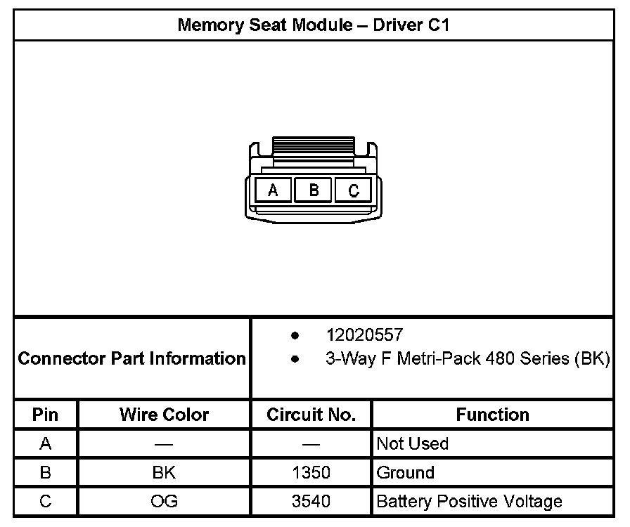 Memory Seat Module - Driver C3: