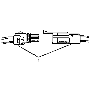 4. Insert the Weather Pack(R) terminal removal tool into the front (mating end) of the connector cavity until it rests on the cavity shoulder (1).