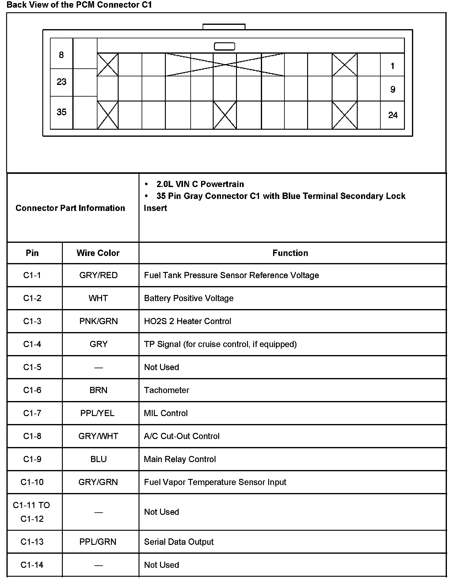 Back View Of The PCM Connector C1 Part 2: