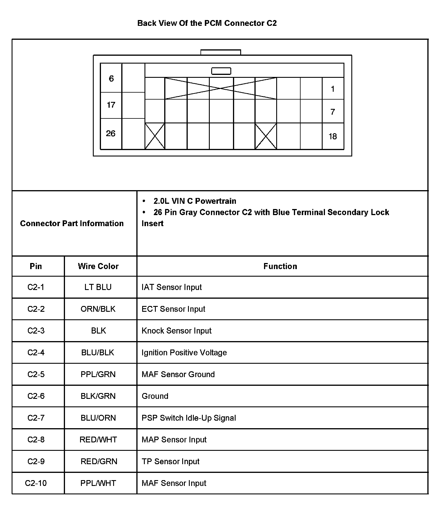 Back View Of The PCM Connector C2 Part 2: