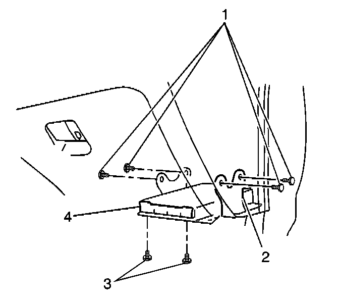 1. Install the PCM bracket (2) underneath the instrument panel.
