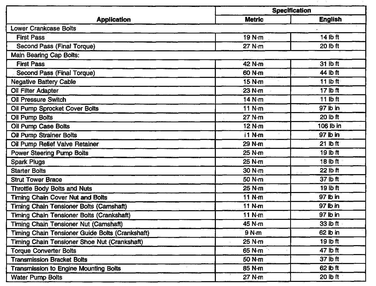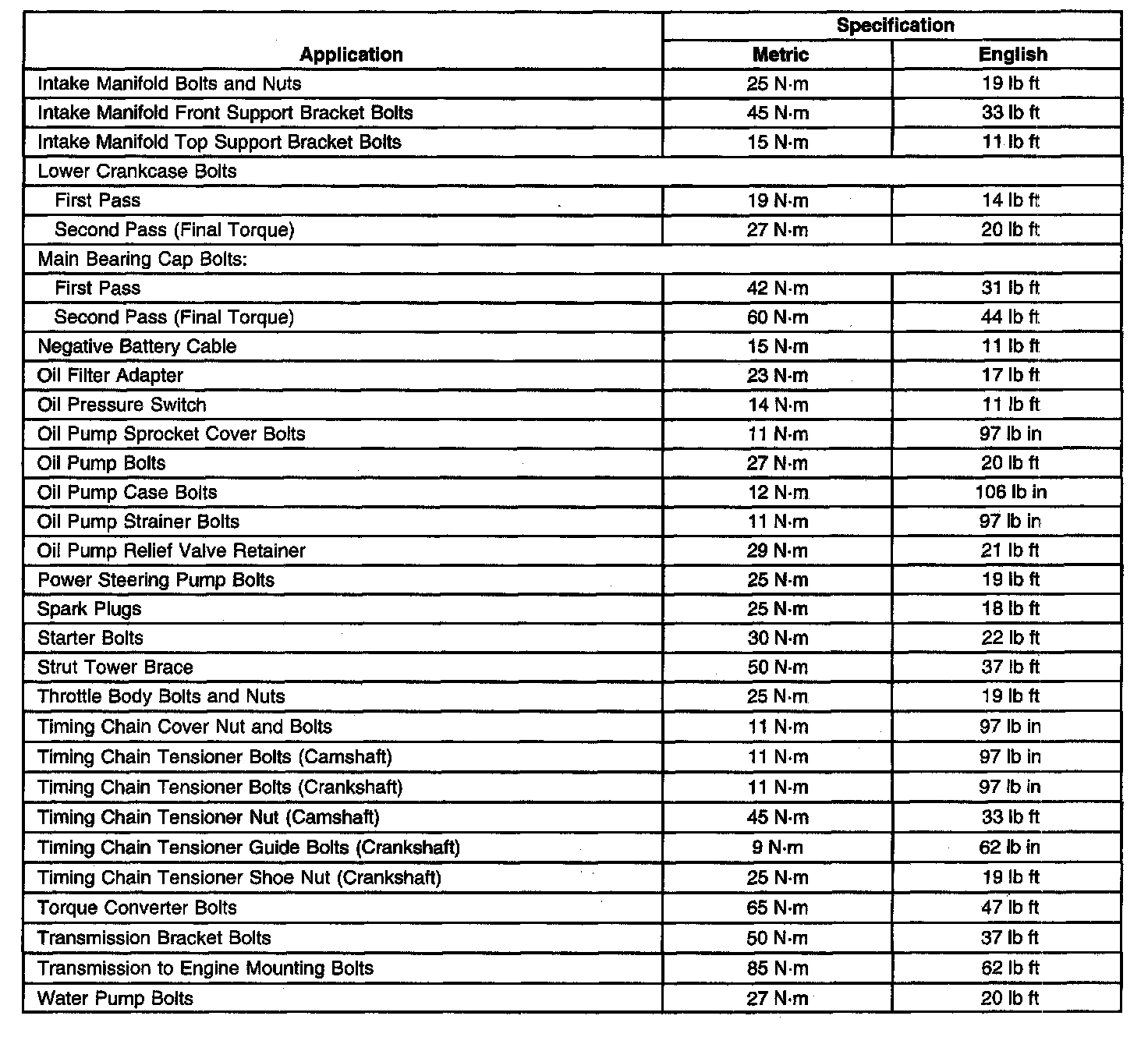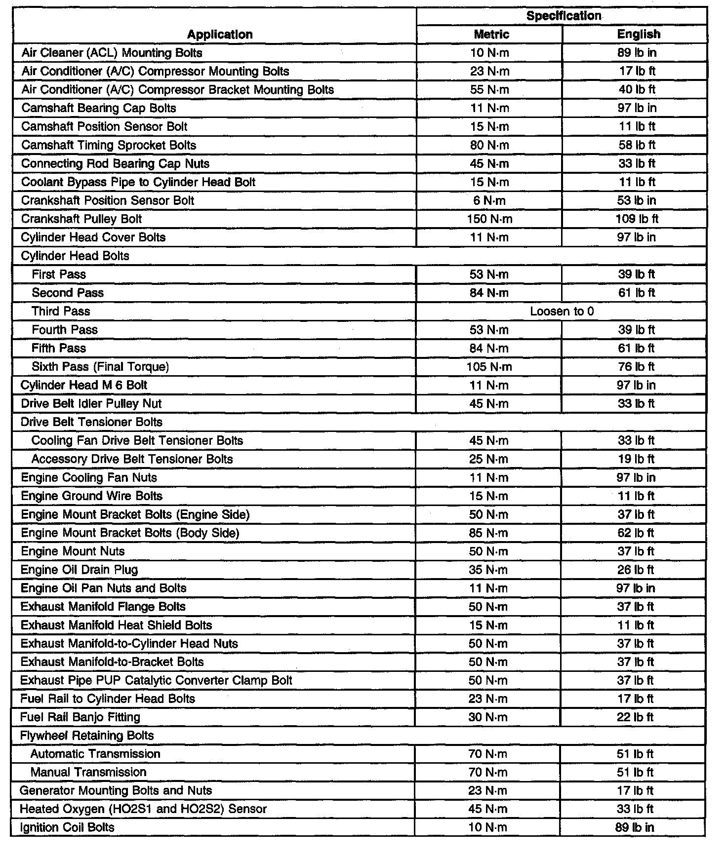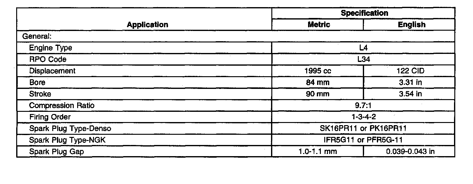 Home >> Chevrolet >> 2003 >> Tracker 2WD L4-2.0L VIN C >> Repair and Diagnosis >> Specifications >> Mechanical Specifications >> Engine >> System Specifications >> General Specifications