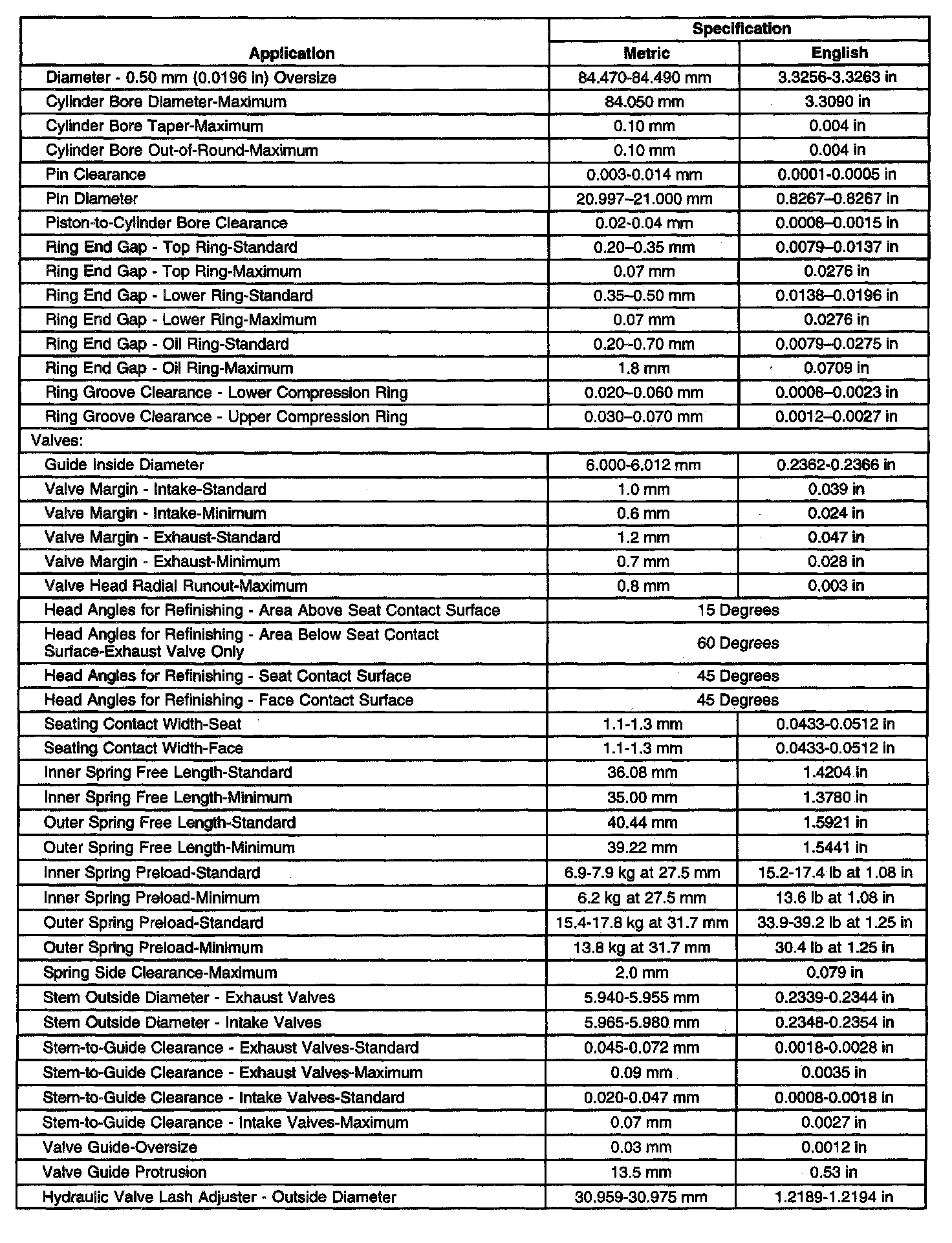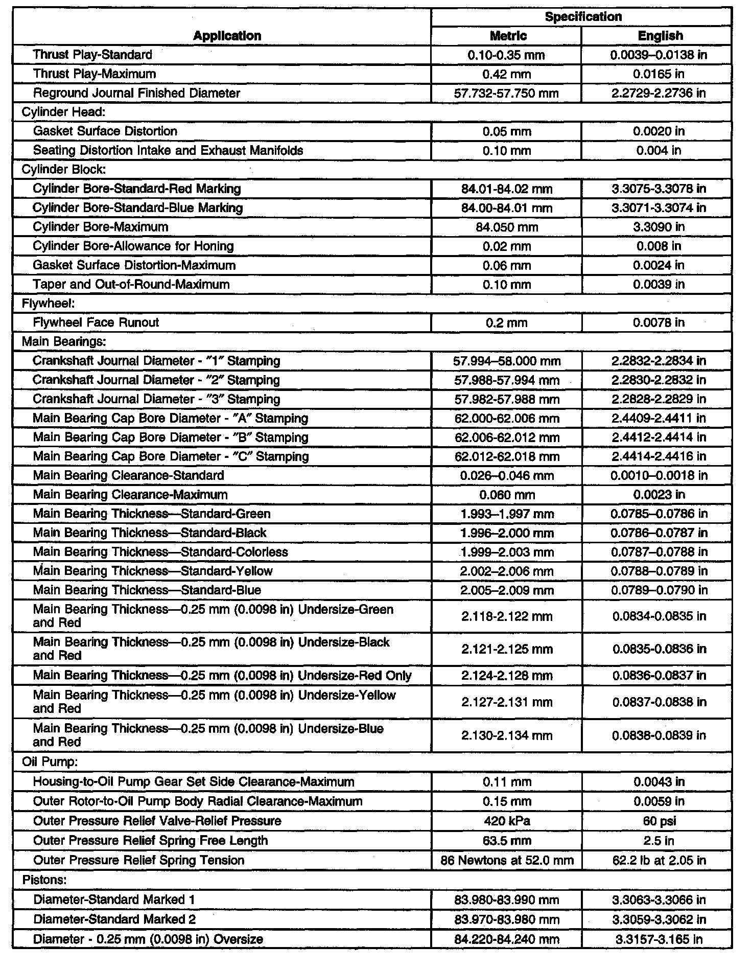 Engine Mechanical Specifications