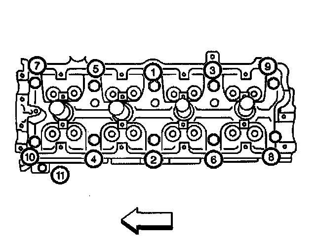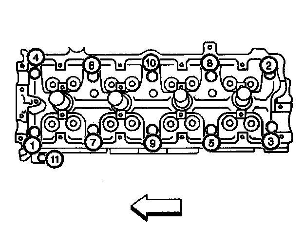 Tighten the cylinder head bolts in (1-10) in the sequence shown to 84 Nm (61 lb ft)