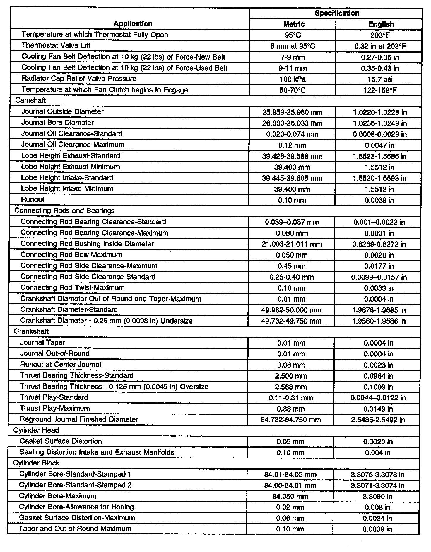 Home >> Chevrolet >> 2003 >> Tracker 2WD V6-2.5L VIN 4 >> Repair and Diagnosis >> Specifications >> Mechanical Specifications >> Engine >> System Specifications >> General Specifications