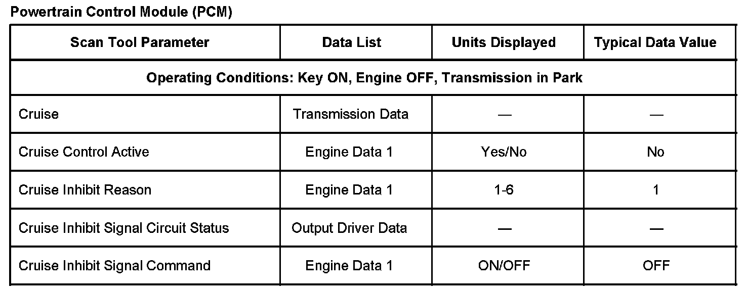 Scan Tool Data List - Powertrain Control Module (PCM)