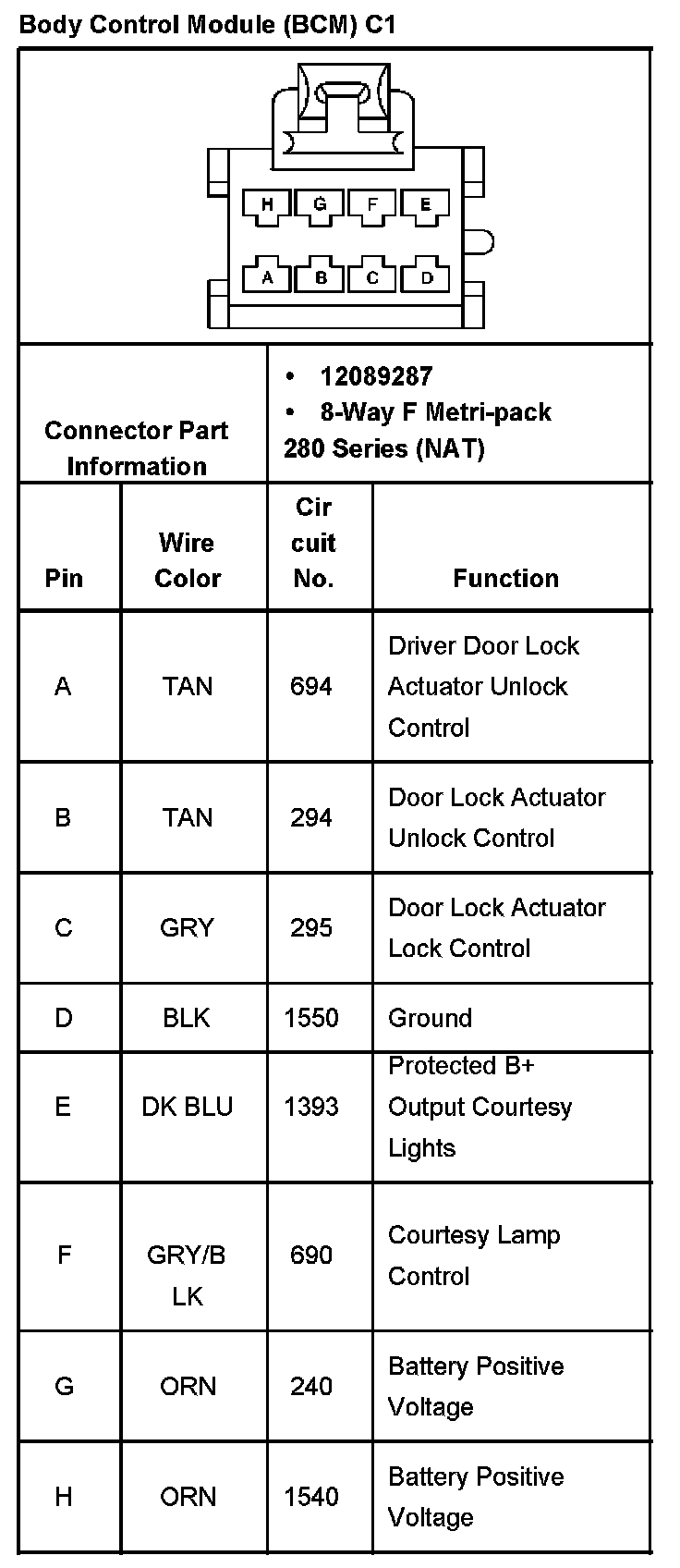 Body Control Module (BCM) C1:
