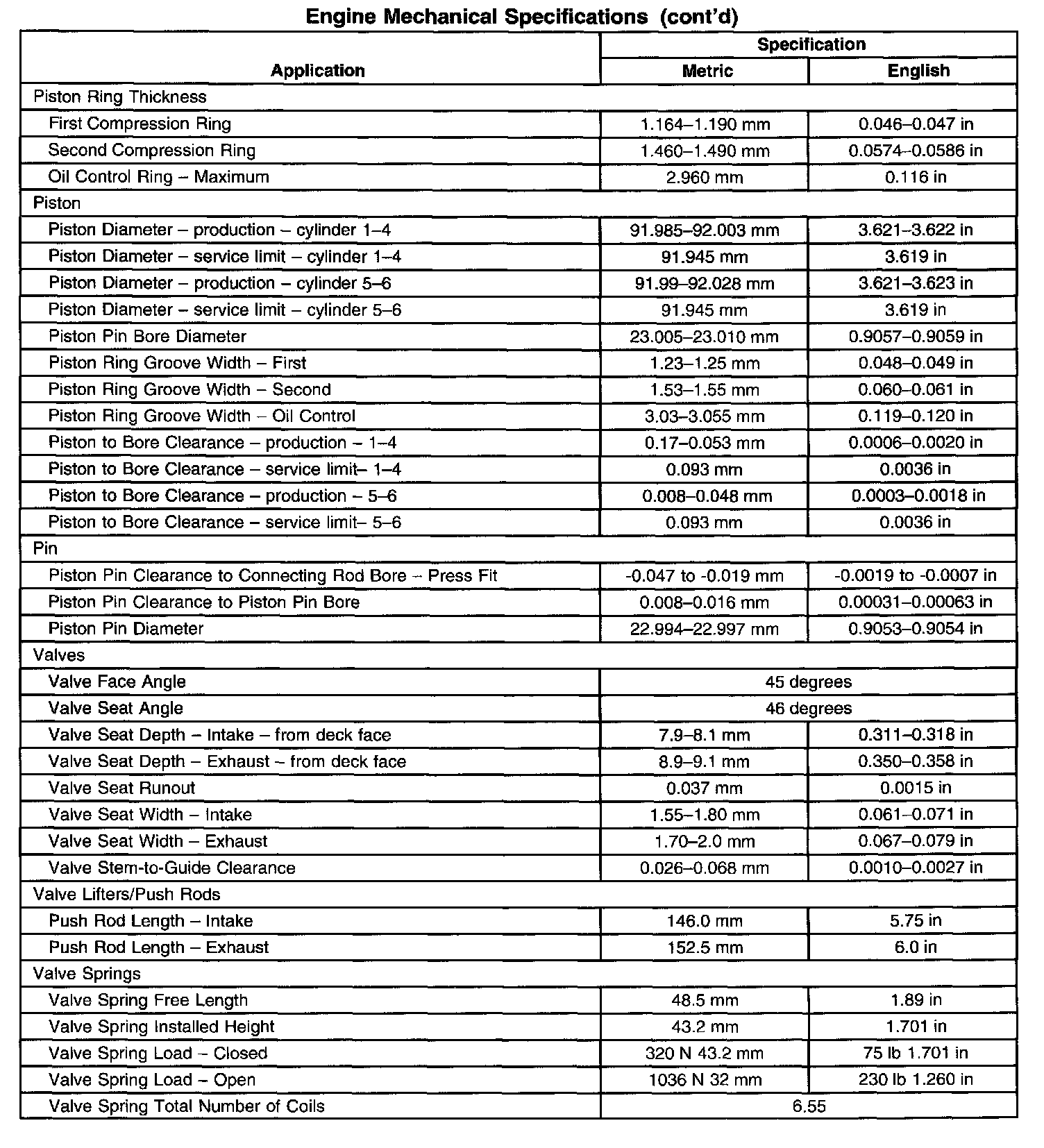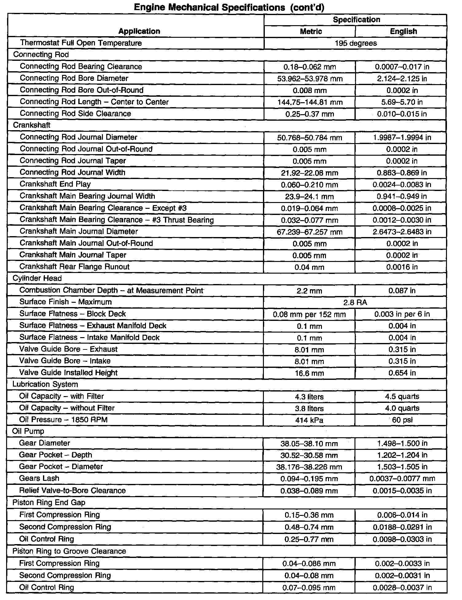Engine Mechanical Specifications