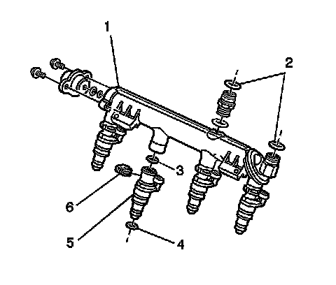The fuel rail assembly (1) attaches to the engine intake manifold. The fuel rail assembly performs the following functions:
