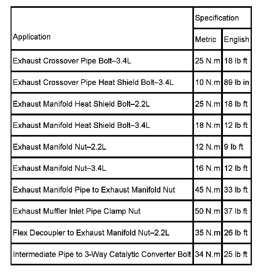 Fastener Tightening Specifications: