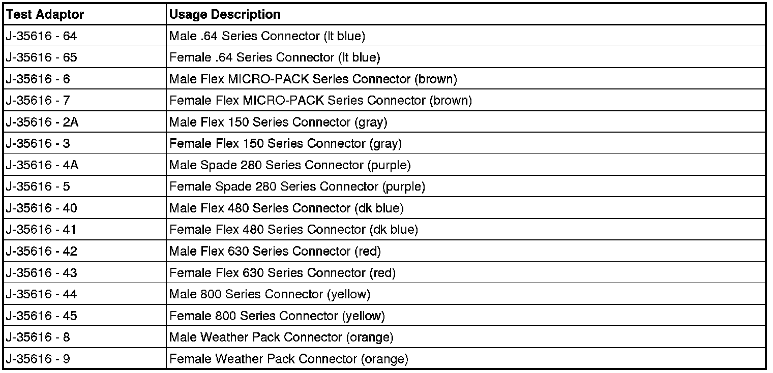 Notice: Do not insert test equipment probes into any connector or fuse block terminal. The diameter of the test probes will deform most terminals. A deformed terminal can cause a poor connection, which can result in system failures. Always use the J 35616 GM-Approved Terminal Test Kit in order to frontprobe terminals. Do not use paper clips or other substitutes as they can damage terminals and cause incorrect measurements.
