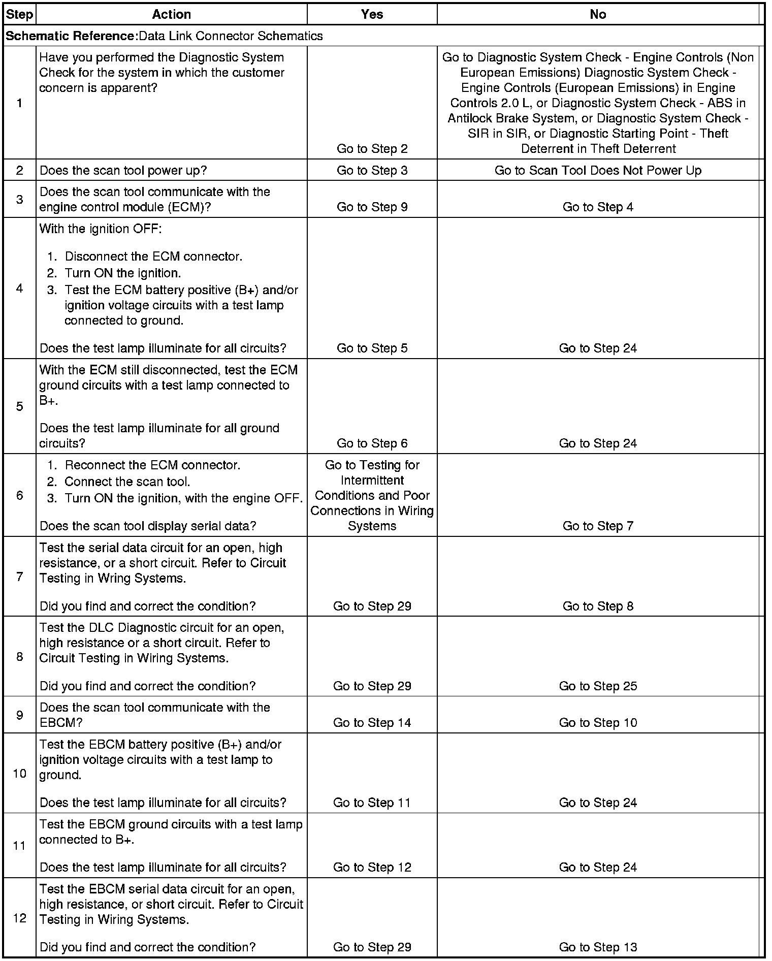 9. This step checks to see if the EBCM is not communicating with the scan tool.